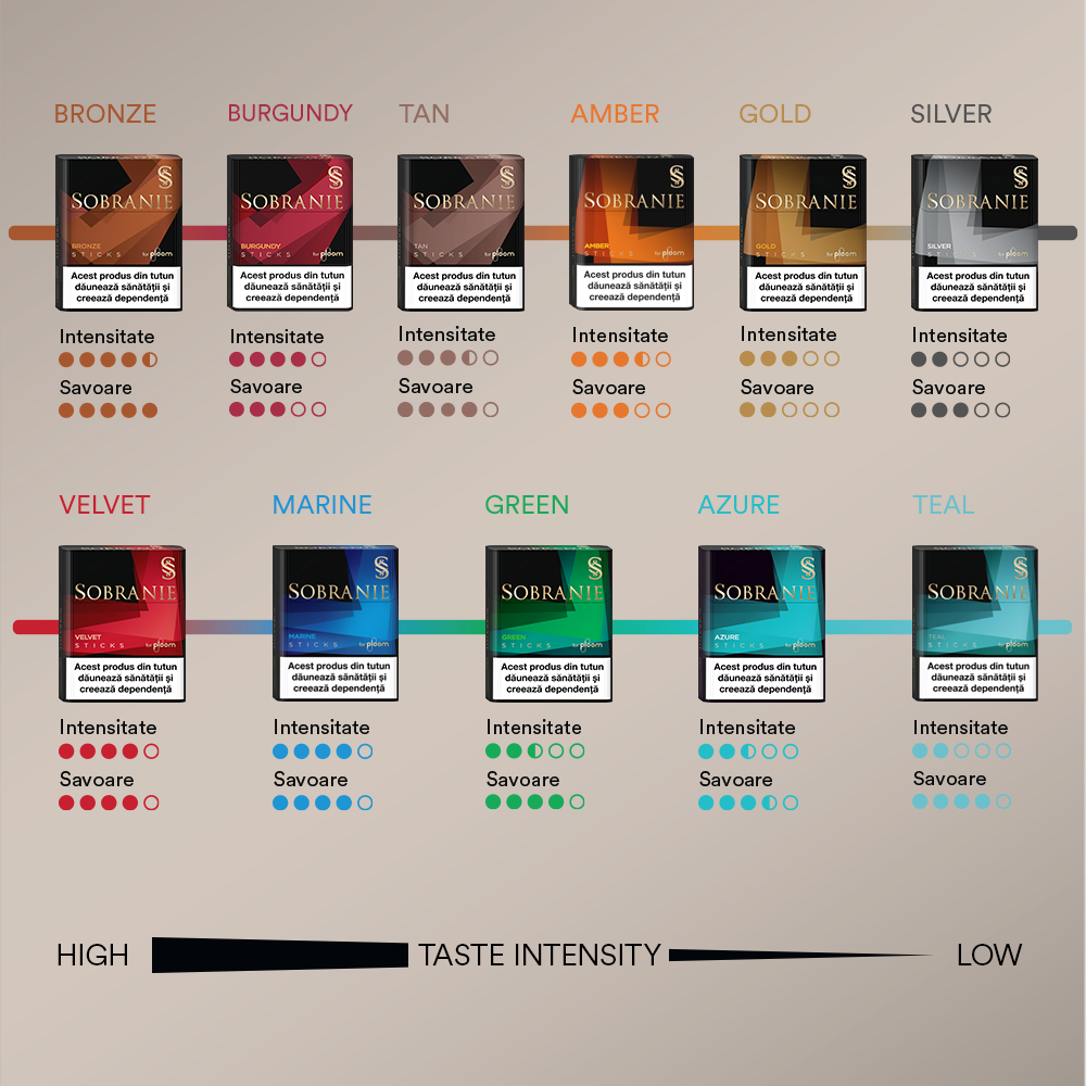 - Sobranie Azure Sticks: Amestec de tutun aromatic, cu note reci echilibrate.